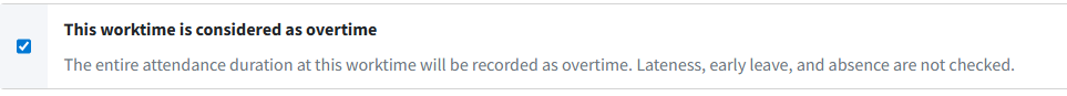 Turning on this option means that any work duration recorded within this work time range will be counted as overtime without logging any attendance offences.
